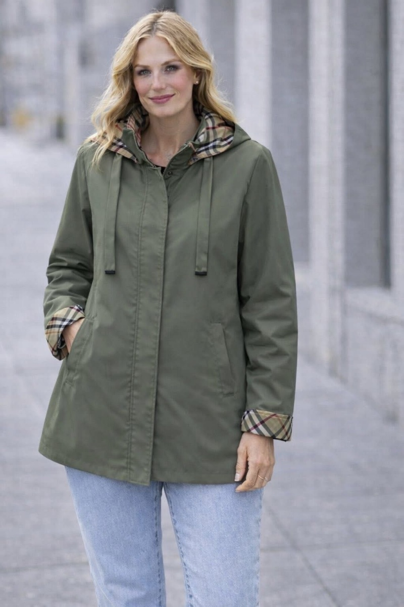 O grande destaque está no forro xadrez no interior do capuz e nos punhos — um detalhe elegante que faz toda a diferença quando arregaças a manga.