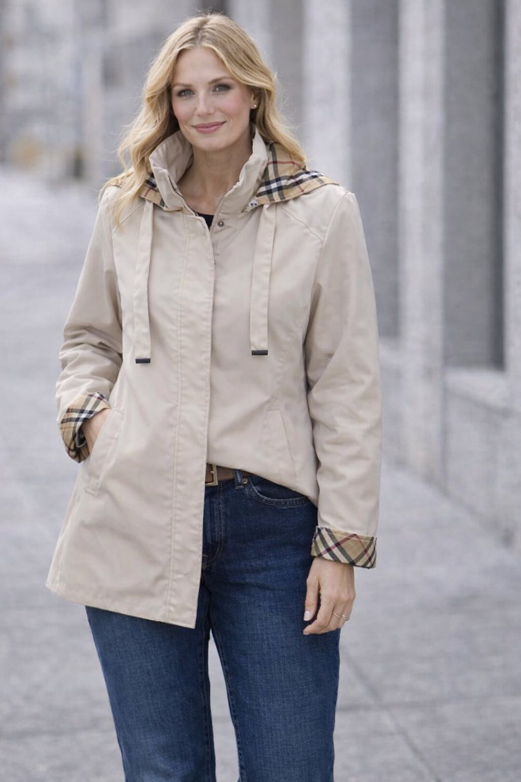 O grande destaque está no forro xadrez no interior do capuz e nos punhos — um detalhe elegante que faz toda a diferença quando arregaças a manga.