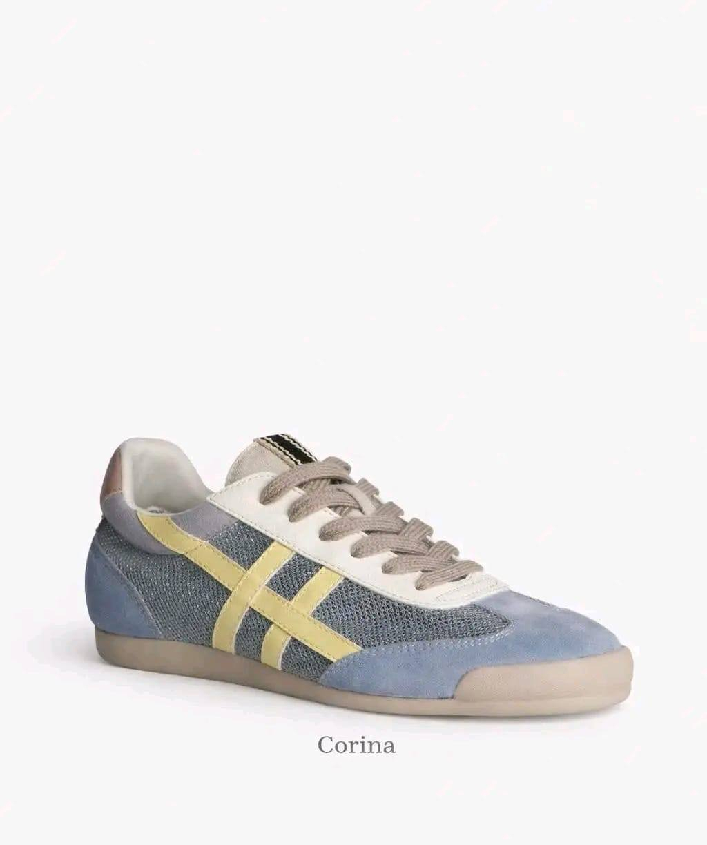 Ténis em combinação de azul e apontamentos em amarelo— diferentes, leves e super confortáveis.